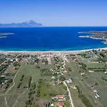 A kitchenette with a fridge, an oven, and a cooktop is provided at the Sykia Chalkidikis villa. Thessaloniki airport is located 140 km away from the villa.